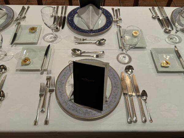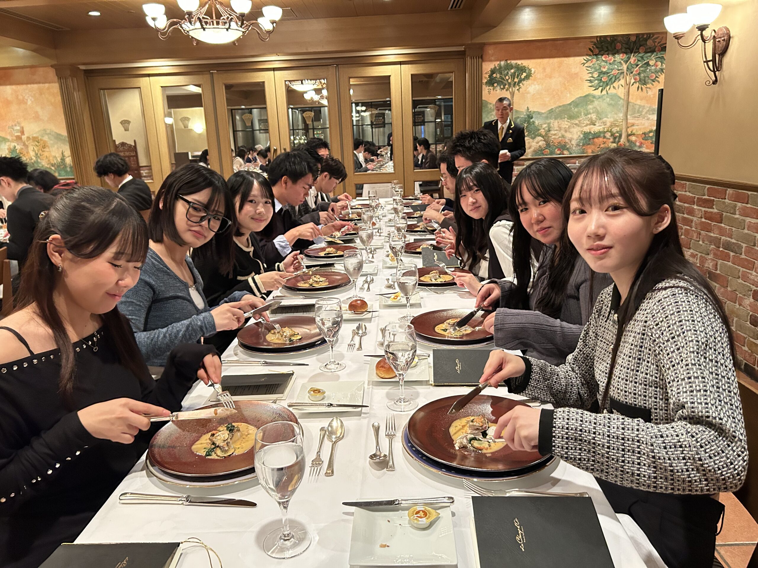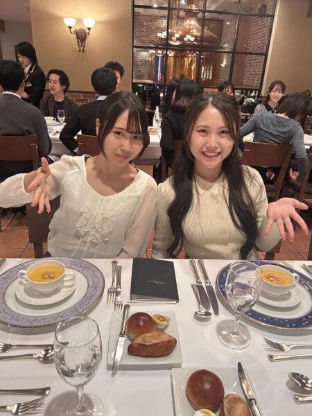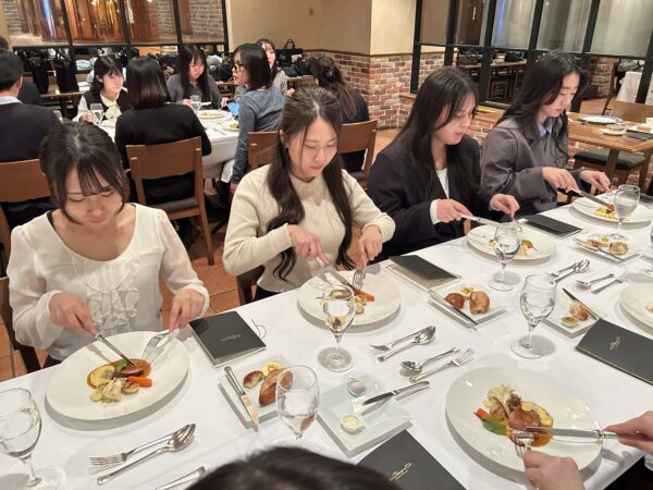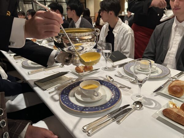 席に着いた学生たちは、目の前に並べられた美しいテーブルセッティングに少し緊張気味…![]()